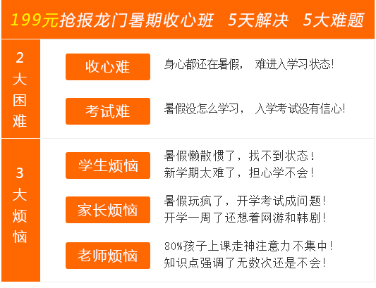 暑假期间多数的孩子依旧是暑期档的“放羊”模式,状态不佳,玩心过重。 暑期将过,一大波开学恐惧症来袭……为了让孩子能尽早调整好生活习惯和心理状态,适应新学期的学习进度,近期龙门教育特推出收心班,快速治愈开学前的小情绪,5天带领学生们回归最佳学习状态!