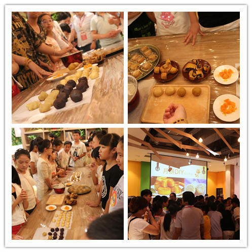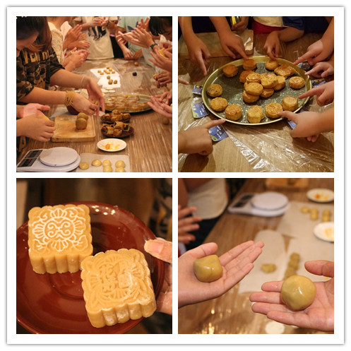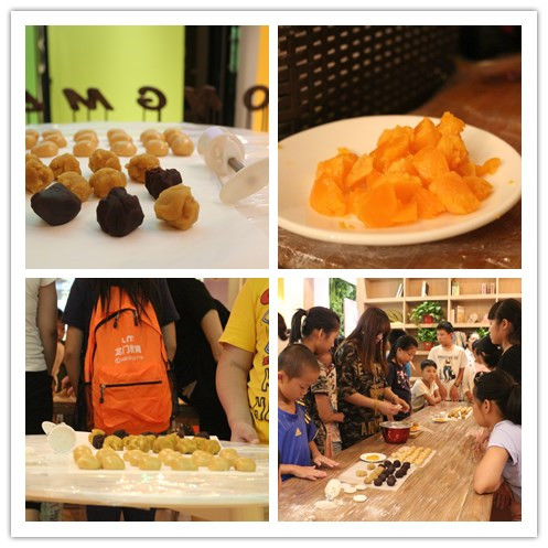 18:30活动准时开始, 现场气氛融洽。揉面团,搓饼馅儿,包月饼,做饼边,填饼模等等步骤。家长与孩子一起尽情玩乐,每个小朋友的热情都很高,有的孩子要求自己独立完成,有的和家长一起,甚至有“大朋友”都忍不住要自己亲手DIY一个带给家人。